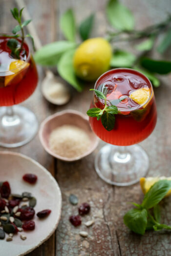 3/ Décorer d’une fraise et de feuilles de menthe.
