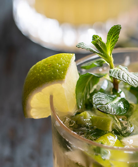 1/ Muddle mint and a few lime quarters in the bottom of the glass.