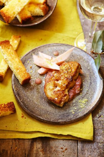Toasts de foie gras poêlé, confiture de fraises et romarin