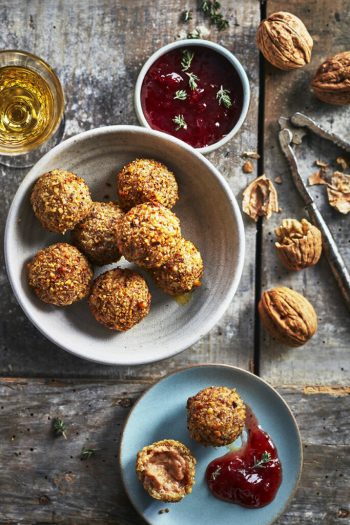 Cromesquis au foie gras et noix, confiture de fraises