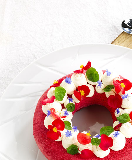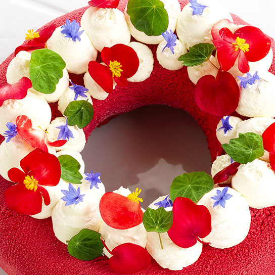 - Sur la photo, la pâtissière a utilisé une bombe velours rouge, vous pouvez la trouver en grande surface pour professionnels, en boutique spécialisée pâtisserie ou sur internet.