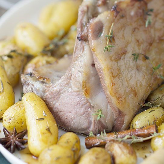 5/ Servez les selles avec les pomme de terre et la sauce sirupeuse. Rectifiez l’assaisonnement.